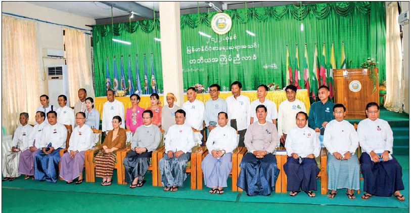 The election of the Central Executive Committee for the third term of the Myanmar Writers’ Association was held, and U Ohn Maung (Myinmu Maung Naing Moe) was elected as the Chairman; U Myo Tun (Maung Sein Naung-Lewe) as Vice Chairman (1); U Soe Myint (Soe Hmu) as Vice Chairman (2); U Myat Soe (Myat Soe-Hline) as Vice Chairman (3); U Nyunt Tin (Maung Nyein Thu-Gyobingauk) as Secretary; U Aung Than Oo (Pathein Aung Than Oo) as Joint-Secretary (1); U Maung Maung Kyi (Yenanmyay Maung Maung Kyi) as Joint-Secretary (2); U Aung Kyi (Aung Kyi Nyunt-Tekkatho) as Joint-Secretary (3); U Aye Min (Dr Aung Htet-Medicine (1)) as Treasurer; U Nyunt Hlaing (Maung Maung Nyunt Hlaing) as Audit Leader and U Tin Aung Shwe (Dr Tin Aung Shwe) as Information Officer; were appointed as the members of the Central Executive Committee.