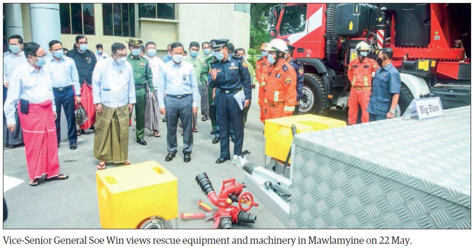 VICE Chairman of the State Administration Council, Chairman of the National Disaster Management Committee-NDMC, Deputy Commander-in-Chief of Defence Services Commander-in-Chief (Army) Vice-Senior General Soe Win met with the people affected by natural disaster due to the heavy rains from 20 May in Mawlamyine, Chaungzon, Thanbyuzayat, Thaton and Paung townships, officials of the Mon State Disaster Management bodies and department officials in Mawlamyine yesterday.