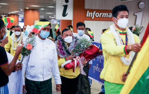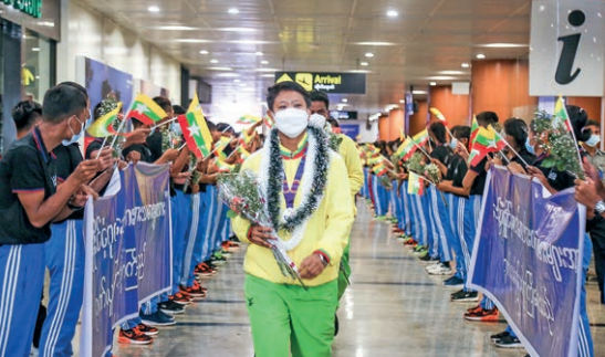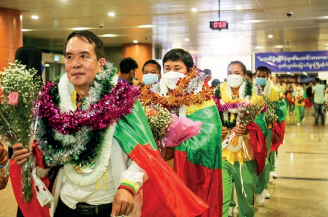 A group of Myanmar athletes arrived back in Yangon on the night of 23 May after competing in the 31st South East Asian Games in Viet Nam.