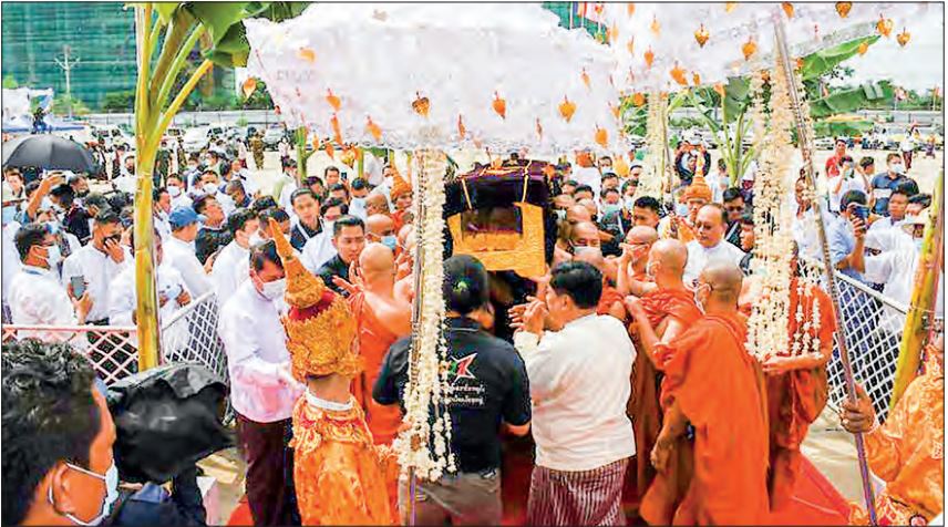 After the set procedures, the remains of the late Sayadaw were conveyed by the Karaweik decorated float to the Thuwunna Bhumi in Thingangyun Township, where the crematorium was built.