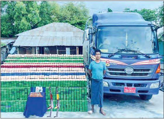 At 1:00 pm on 24 May, the Anti-Drug Police Force stopped and examined a Hino 6-wheeler driven by Thiha Aung heading from PyinOoLwin to Mandalay at the 16-mile joint checkpoint, according to the information. They captured K825 million worth of 33 kilogrammes of heroin and two M22 guns, two magazines and 100 bullets of M22 gun.