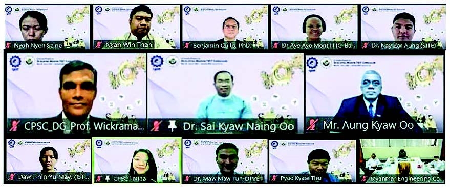 THE opening ceremony of In-Country Programme on Developing Modern TVET Curriculum was jointly held by Colombo Plan Staff College for Technician Education (CPSC) in collaboration with the Department of Technical and Vocational Education and Training at 9:00 am on 30 May 2022 at the Ministry of Science and Technology via online. Permanent Secretary Dr Sai Kyaw Naing Oo addressed the inaugural address. Then, Director-General of CPSC Prof. G.L.D. Wickramasinghe and U Aung Kyaw Oo, Charge d’Affaires of the Embassy of the Republic of the Union of Myanmar to the Philippines delivered speeches and videos of the Department and CPSC were presented.