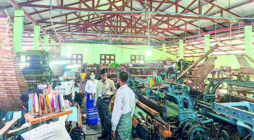Then, they went to the Shwekya weaving operation in Kyamathauk Village in Sittway. They met the owner and viewed round the operation site.