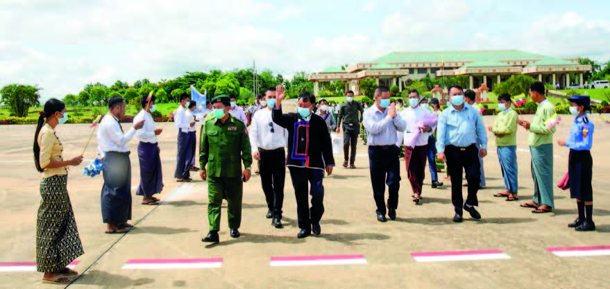 The peace delegation was seen off by officials of the National Solidarity and Peacemaking Negotiation Committee, officials and ethnic people from the Department of Fine Arts at Nay Pyi Taw Tatmadaw Airport holding miniature State flags and placards bearing, “Perpetual peace is the real aspiration of the people”, “Achieving peace is the true desire of all citizens”, “Let’s hold talks for peace in the Union”, “Only the ethnic nationalities are in unity, stability, peace and tranquillity will be achieved”.