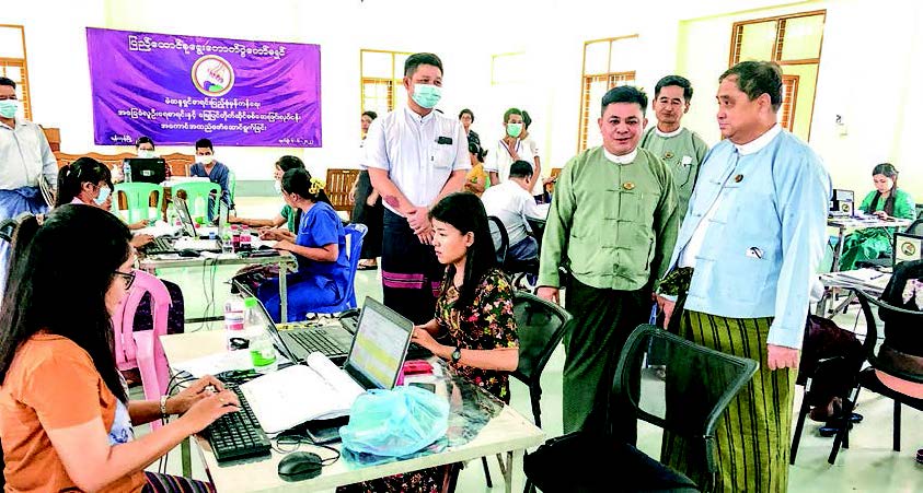 U Aung Moe Myint, a member of the Union Election Commission, inspected the basic population census and ground verification work to have accurate voter lists conducted at the Thuwunna Youth Training Centre in Yangon yesterday.