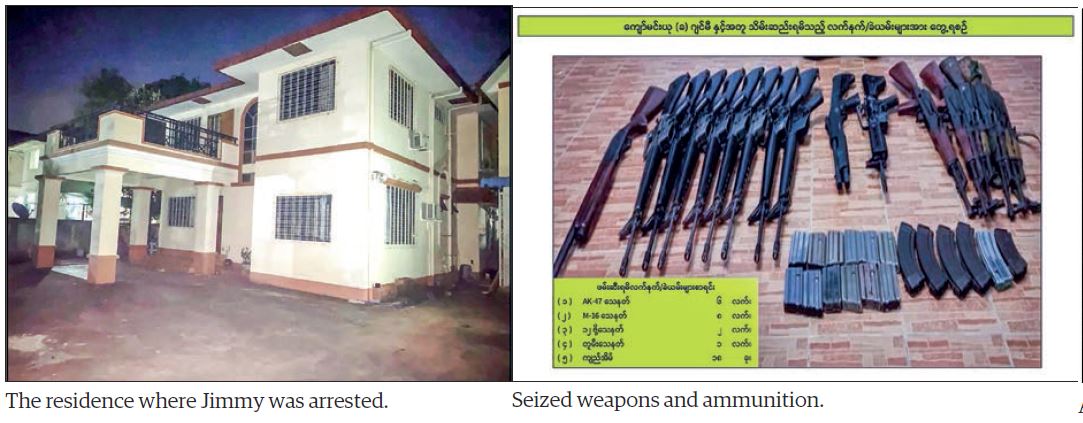 1. Kyaw Min Yu (a) Jimmy, the former 88 generation’s Public Relations Officer for Peace and Open Society, the current political and security adviser of the terrorist CRPH/NUG, who assassinated innocent people, security forces and government employees, and perpetrated bombings in order to disturb the peace and stability of the country, was arrested on the morning of 24 October 2021 at No 109/B in Panglong Housing Estate, No-27 ward, in Dagon Myothit (North) Township.