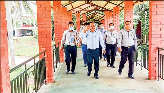 Then, he went to the Pyidaungsu Hall where the National Convention was convened to draw the Constitution (2008) near Nyaunghnapin Village of Hlegu Township in the Yangon Region and officials reported on maintenance works.