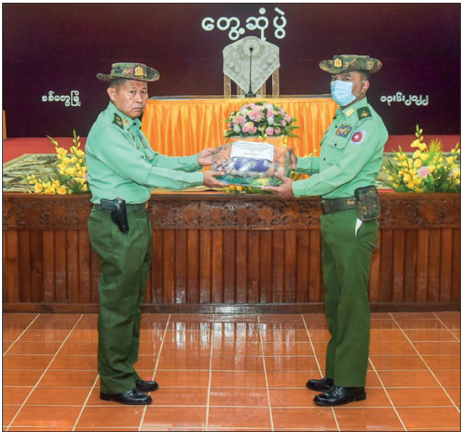 The Vice-Senior General stressed that the Tatmadaw gives training to Tatmadaw members to have military capabilities to keep abreast of international armed forces. The whole Tatmadaw (Army, Navy and Air) needs to abide by the rules of engagement (ROE). The military code of conduct mentions measures of humanitarian, human rights, and facts about ROE. Officials need to manage to fulfil the basic needs, education and health sectors of officers, other ranks and families for fostering the family spirit in the military units, the Vice-Senior General said. Then, the Vice-Senior General fulfilled the needs of officers, other ranks and families.
