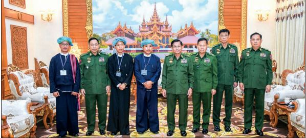 CHAIRMAN of the State Administration Council Commander-in-Chief of Defence Services Senior General Min Aung Hlaing received a peace delegation led by Vice-Chairperson-1 U Khun Htun Tin of the Pa-O National Liberation Organization-PNLO at Bayintnaung Villa in Nay Pyi Taw yesterday morning to talk about peace issues.