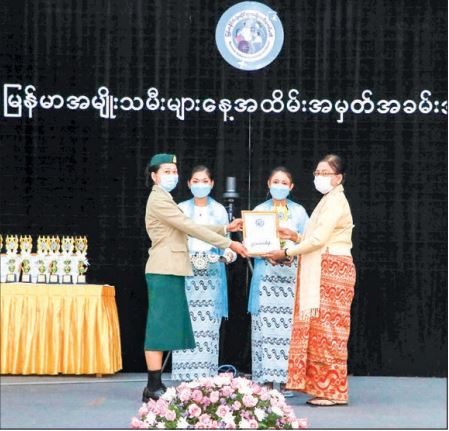 A video clip on milestones of development of women was presented. SAC member Daw Aye Nu Sein, Union Minister Dr Thet Thet Khaing, wives of Union ministers, deputy ministers and Nay Pyi Taw Council member U Myint Soe presented awards to outstanding women.