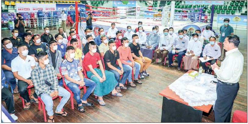 Afterwards, the Union minister and party arrived at Theinbyu Boxing Stadium in Mingala Taungnyunt Township and addressed coaches, referees and athletes from Myanmar Traditional Boxing Federation.