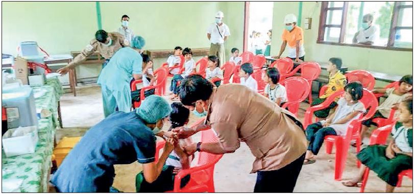 COVID-19 vaccine is administered daily to target groups regardless of race or religion, including Buddhist monks and nuns, local people over the age of 40, students, religious leaders, prisoners, people with disabilities, ethnic armed groups, people with chronic diseases, people in IDP camps and over 12-year-old students, respectively.