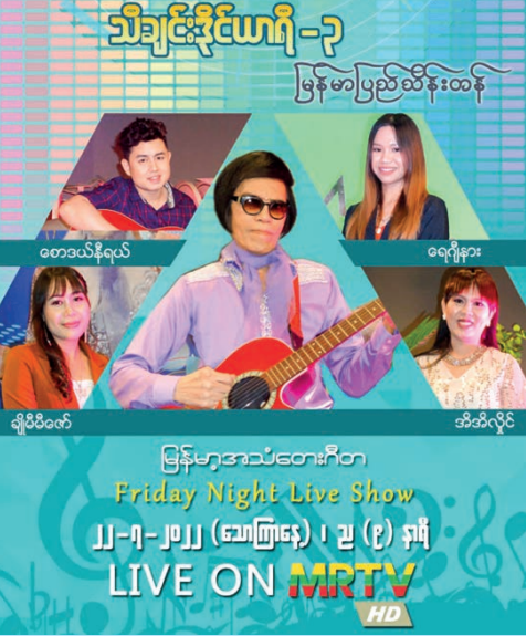 It will feature Myanmar Pyi Thein Tan as well as new generation singers such as Saw Daniel, Regina, Cho Mie Mie Zaw and Ei Ei Hlaing, film stars Nay Dway and Thinzar Myintmo and the MRTV orchestra.