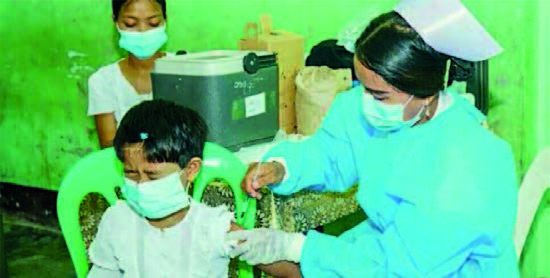 Similarly on that day, healthcare officials gave the vaccines to 2,001 students from twenty-six townships in Ayeyawady Region and 1,823 students from five townships in Rakhine and Chin States.