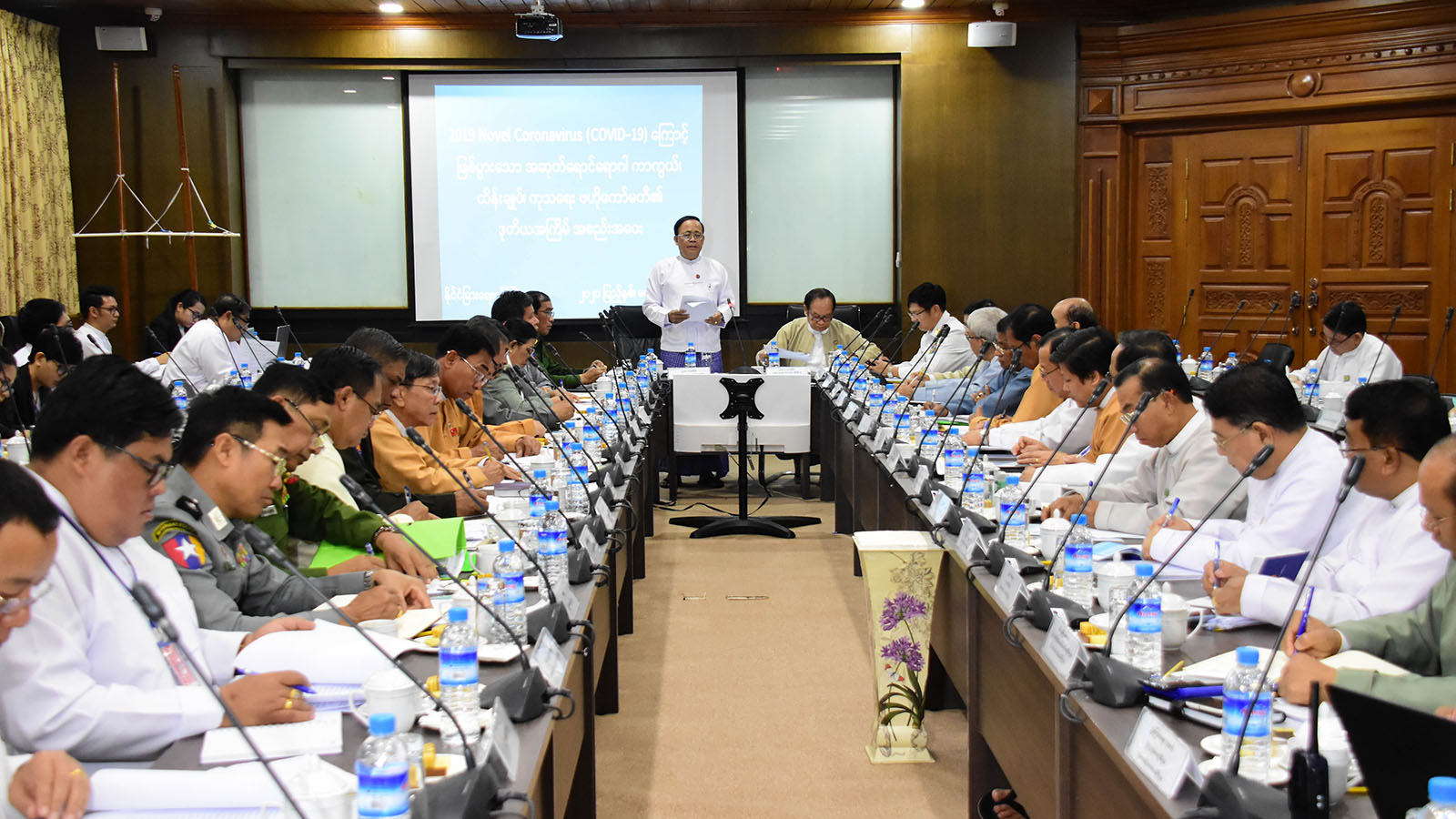 Union Minister for Health and Sports Dr Myint Htwe, in his capacity as the joint chairman of committee, presented the measures of his office against the disease in coordination with relevant ministries across the country, while it has been advised not to organize large public events where screening of disease is to be carried out very tightly.