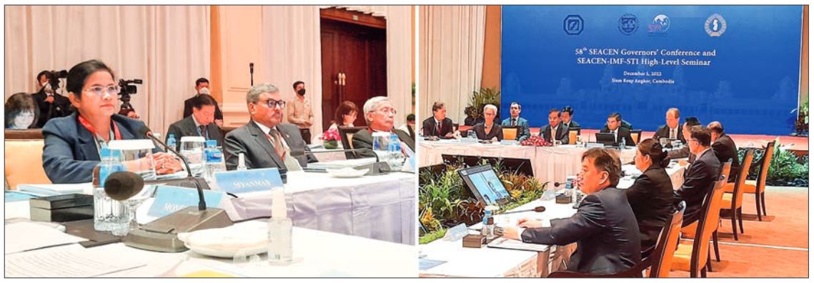 GOVERNOR of the Central Bank of Myanmar Daw Than Than Swe attended the 58th SEACEN Governors’ Confer- ence/High-Level Seminar and 42nd SEACEN Board of Governors-BOG Meeting jointly organized by The South East Asian Central Banks (SEACEN) Research and Training Centre and the National Bank of Cambodia on 5 December in Cambodia.