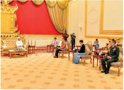 CHAIRMAN of the State Administration Council Prime Minister Senior General Min Aung Hlaing accepted the Credentials of Ambassador-Designate of Thailand to Myanmar Mr Mongkol Visitstump at the Credentials Hall of the Office of the State Administration Council Chairman in Nay Pyi Taw yesterday morning.
