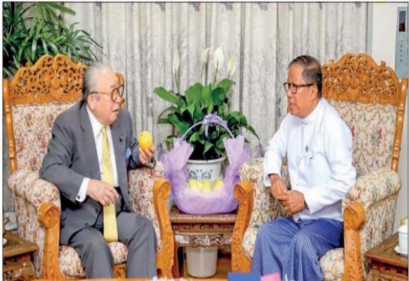 UNION Minister for Agriculture, Livestock and Irrigation U Tin Htut Oo received Mr Watanabe Hideo, Chairman of the Japan-Myanmar Association, at his ministry in Nay Pyi Taw yesterday.
