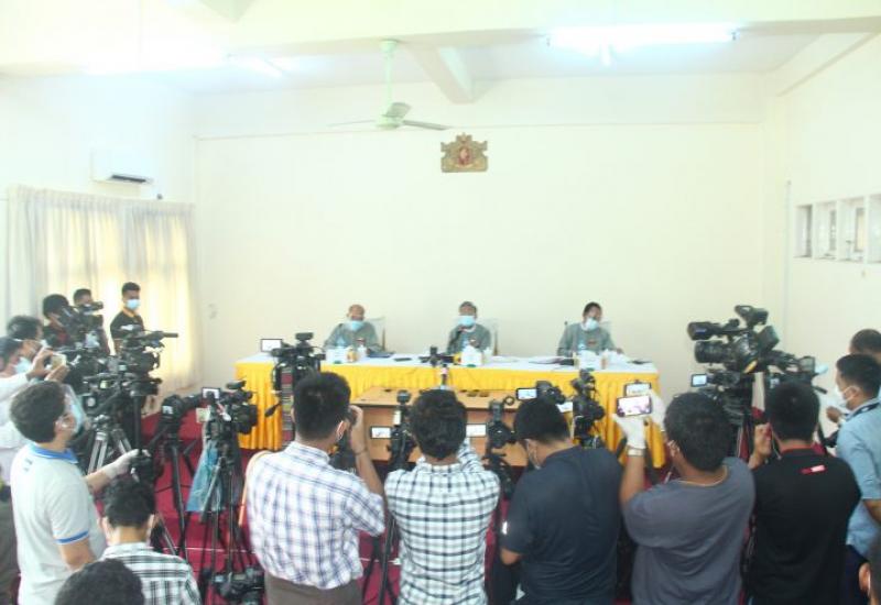 Union Election Commission held a press conference on election-related matters in Nay Pyi Taw yesterday afternoon. The conference was held in accordance with the COVID-19 control and prevention guidelines. Members of press release team U Myint Naing, U Than Htay, U Swe Tint Lwin and officials from the UEC office answered the questions of 34 foreign and local media organizations.