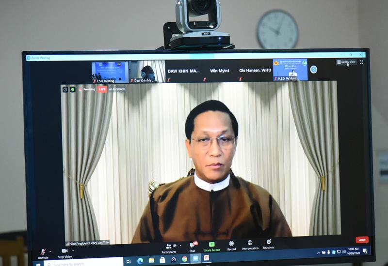 Vice President U Henry Van Thio, in his capacity as Chairperson of the Central Committee for Accurate and High-Quality Statistics, delivered an opening speech at a virtual event marking the World Statistics Day 2020 hosted at the Ministry of Planning, Finance and Industry in Nay Pyi Taw yesterday morning. The committee Secretary U San Myint (Director-General), the Deputy Director-General, and other officials attended the event in the ministry.