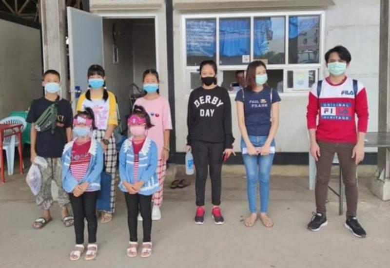 Myanmar officials helped the return of 8 Thai nationals (2 men and 6 women) to their home from Tachilek through Myanmar-Thai Friendship bridge yesterday afternoon. They underwent medical tests with taking their body temperature before being transferred to their home .