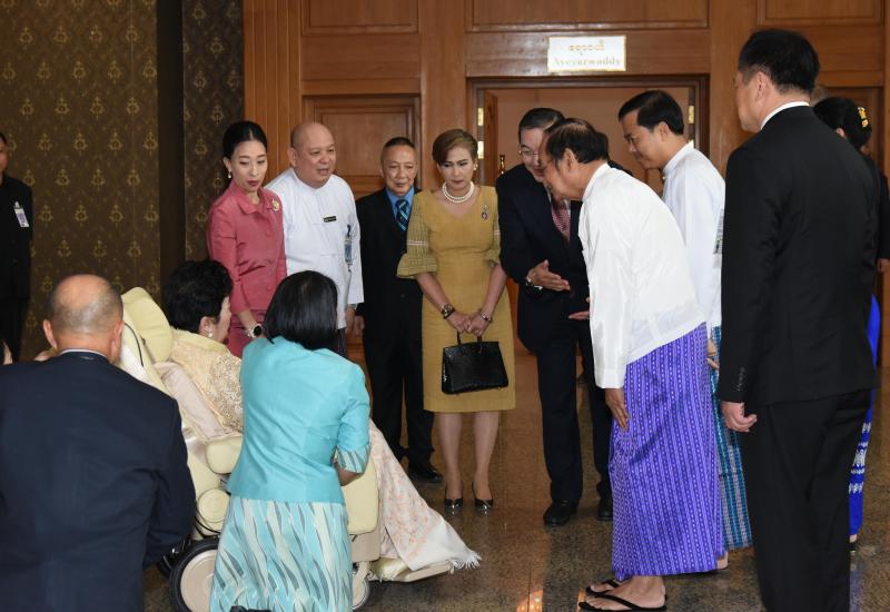 They were welcomed at the Nay Pyi Taw International Airport by Union Minister for Health and Sports Dr Myint Htwe, Permanent Secretary of the Ministry of Foreign Affairs U Soe Han, Ambassador of Thailand Mrs Suphatra Srimaitreephithak and officials.