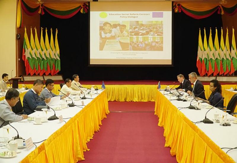 The Ministry of Education and the European Union held the Education Sector Reform Contract Policy Dialogue on 23 March for the EU’s disbursement of 32 million euro (K51 billion) in support of education reform in Myanmar.