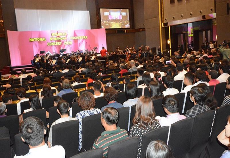 The event, dubbed ‘Myanmar National Symphony Orchestra Concerts 2020’, was attended by Yangon Region Hluttaw Deputy Speaker U Lin Naing Myint, Yangon Region Government’s Rakhine Ethnic Affairs Minister U Zaw Aye Maung, Japanese Ambassador to Myanmar Mr Ichiro Maruyama, heads of foreign missions in Myanmar, the invited guests and music lovers.
