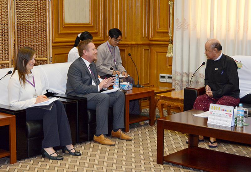 CHAIRMAN U Hla Thein of the Union Election Commission received Mr Holly Ruthrauff, leader of the External Team of Election Experts of the Department for International Development – DFID (UKaid), and delegation at the UEC office in Nay Pyi Taw yesterday morning.