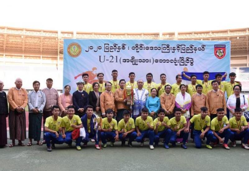 THE final match and award-giving ceremony of 2020 States/Regions U-21 men’s football match was held at the Wunna Theikdi Stadium in Nay Pyi Taw, with Speaker of Amyotha Hluttaw Mahn Win Khaing Than and wife Nan Kyin Kyi in attendance yesterday.