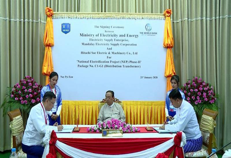 Mandalay Electricity Supply Corporation, Electricity Supply Enterprise, Ministry of Electricity and Energy, and Hitachi Soe Electric & Machinery Co., Ltd. (HISEM), a tender winner for the National Electrification Project (NEP) Phase-II, signed a contract at the ministry in Nay Pyi Taw yesterday.