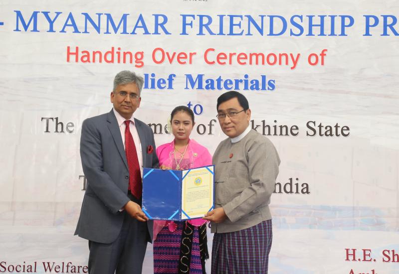 India government offered 20,000 relief aid bags, totally worth of US$235,456, to the internally displaced persons in Rakhine State.