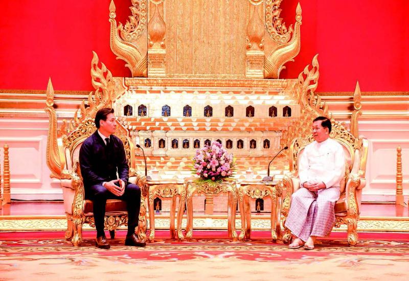 STATE Administration Council Chairman Prime Minister Senior General Min Aung Hlaing received a delegation led by Mr Batu Khasikov, Head of the Republic of Kalmykia of the Russian Federation, at the Credentials Hall of the State Administration Council Chairman’s Office in Nay Pyi Taw yesterday morning.