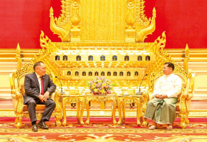STATE Administration Council Chairman Prime Minister Senior General Min Aung Hlaing received a delegation led by Mr Sholban Kara-Ool, Deputy Chairman of the State Duma of the Federal Assembly of the Russian Federation, at the Credentials Hall of the Office of the State Administration Council Chairman in Nay Pyi Taw yesterday morning.
