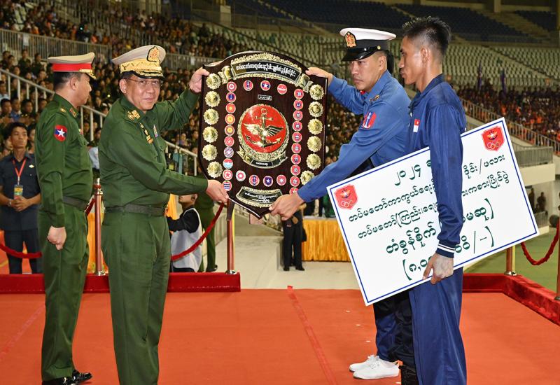 Chairman of the State Administration Council Commander-in-Chief of Defence Services Senior General Min Aung Hlaing attended the awarding of the 2024 Tatmadaw (Army, Navy and Air) Sports Competitions at Zeyathiri Tatmadaw Sports Ground in Nay Pyi Taw yesterday afternoon.