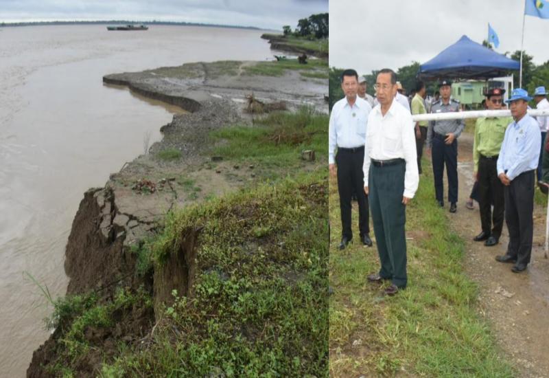 SAC Member Mahn Nyein Maung, accompanied by Ayeyawady Region Chief Minister U Tin Maung Win and other regional government officials, conducted inspections of the disaster-affected areas near Phaungseik village in Hinthada Township yesterday morning.