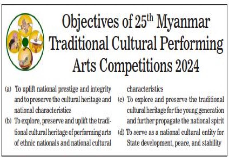 Objectives of 25th Myanmar Traditional Cultural Performing Arts Competitions 2024