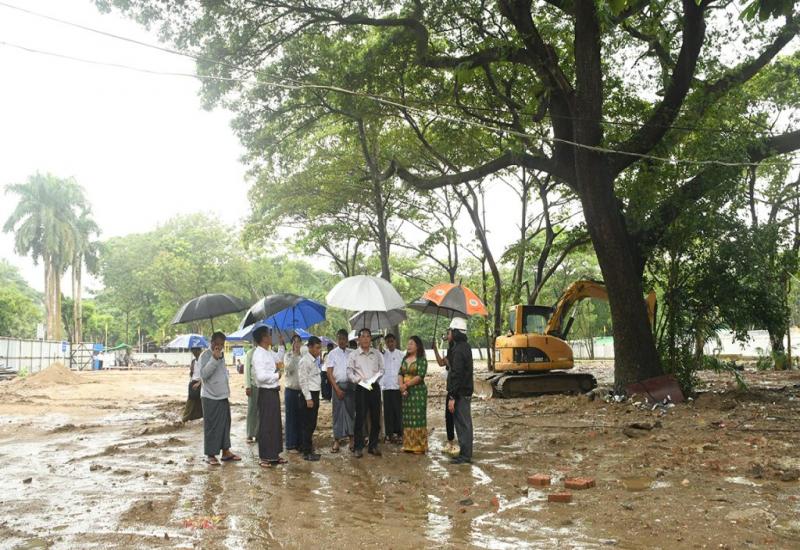 UNION Minister for Information U Maung Maung Ohn inspected the preparations for a groundbreaking ceremony of the three-storey RC Sarso Beikman building in Mingala Taungnyunt Township of Yangon yesterday.