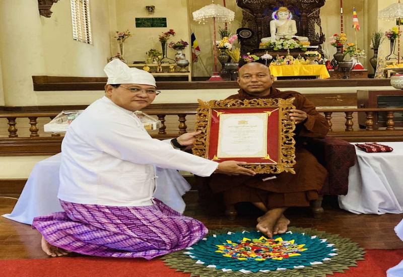 THE year 2024 conferring ceremony of Religious Title offered by the State Administration Council of the Republic of the Union of Myanmar to the Most Venerable Bhaddanta Pandita, serving the religious duties, were presented religious title Maha Saddhammajotikadhaja and insignia by U Myo Myint Maung, Myanmar Ambassador to Nepal, at the Myanmar Golden Temple in Lumbini yesterday.