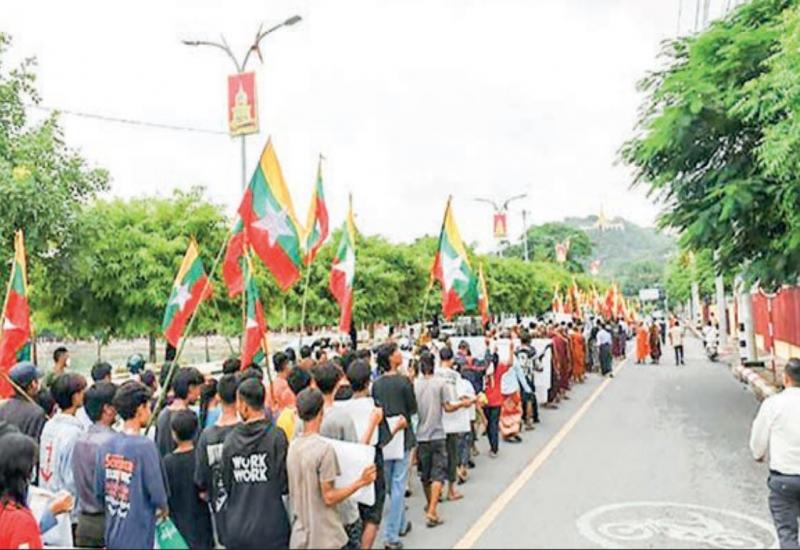 TO protect the capital of Mandalay Region and its cultural heritage, monks and patriotic locals staged a peaceful demonstration at the foot of Mandalay Hill in Aungmyaythazan Township on the afternoon of 29 August.