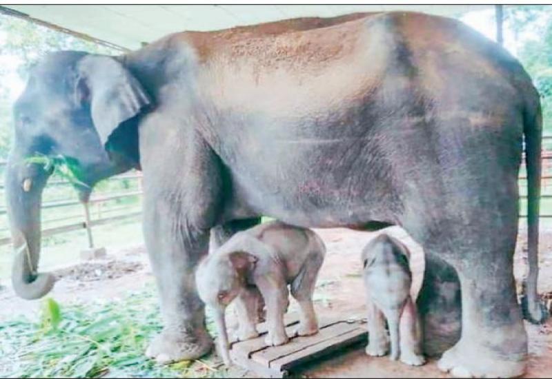 THE 21-year-old female elephant Pearl Sanda at the Wingabaw elephant camp in Phayagyi, Bago Region, gave birth to twin elephants on 26 August for the first time, and the babies are in good health, according to the Wingabaw elephant camp.