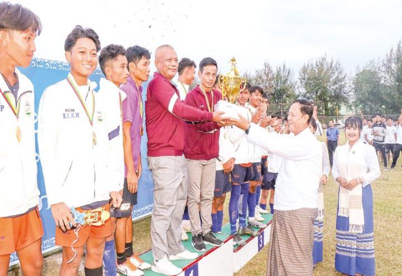 Union Minister for Cooperatives and Rural Development U Hla Moe attended the award ceremony for the 2024 Union Minister’s Cup National (Open) Football Tournament yesterday at No 6 Basic Education High School, Zabuthiri Township, Nay Pyi Taw, yesterday. The event featured competitive matches between teams from various departments and universities.