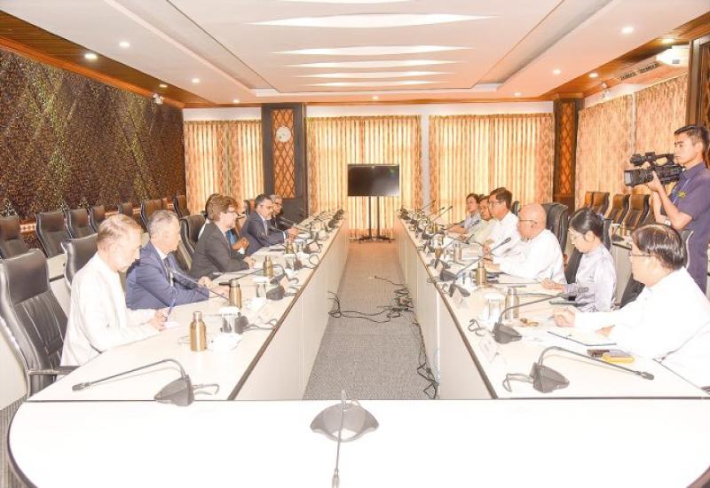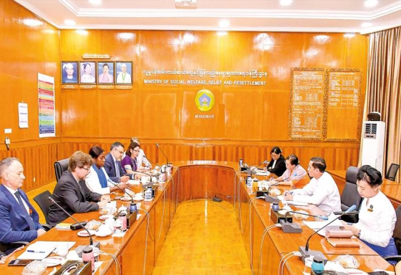 Deputy Minister for Social Welfare, Relief and Resettlement U Soe Kyi met New York-based Emergency Directors Group (EDG) of UN agencies and humanitarian agencies at the ministry in Nay Pyi taw yesterday morning.