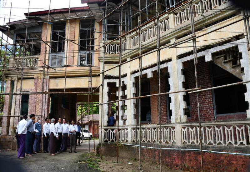 UNION Minister for Information U Maung Maung Ohn inspected the renovation work on the former film branch building (Mawgun) in Bahan Township yesterday.