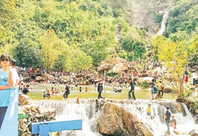 SinYwa Waterfall, a prominent rainy-season destination in Paung Township in Mon State, has been receiving tens of thousands of visitors during the holidays, according to an official from the Aung Nawarat Social Association.
