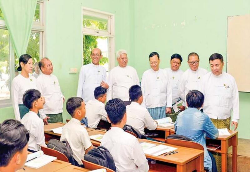 Union Minister for Education Dr Nyunt Pe, along with Deputy Ministers Dr Zaw Myint and Dr Moe Zaw Tun, Permanent Secretary Dr Soe Win, and officials, inspected the opening of the 2024-2025 academic year basic education schools in Nay Pyi Taw yesterday morning, encouraging students to study peacefully.