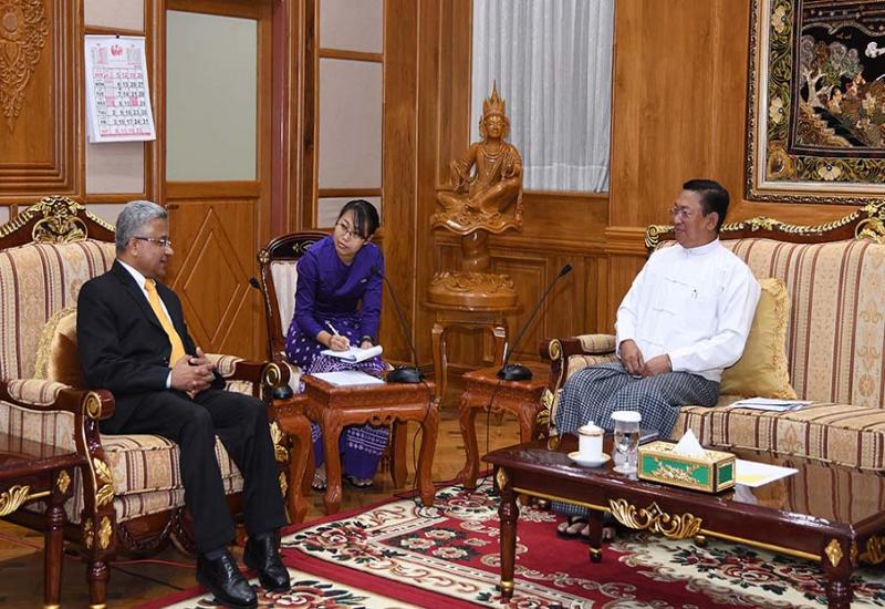 NATIONAL Security Adviser Union Minister at the State Administration Council Chairman’s Office 1 Admiral Moe Aung received the delegation led by Ambassador of India to Myanmar Mr Abhay Thakur at the reception hall of the State Administration Council office in Nay Pyi Taw yesterday afternoon.