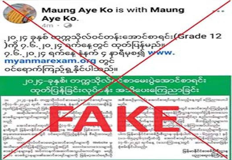 ANNOUNCEMENTS on matriculation exam results that have been spread on social media pages are fake, the Department of Myanmar Examinations announced.