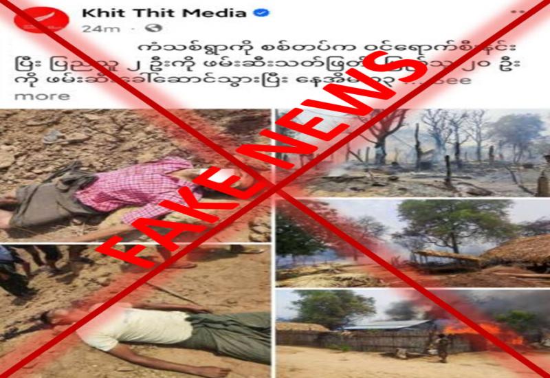 Reports from certain media sources are spreading false information alleging that Tatmadaw security forces conducted a raid on Kanthit Village in Pakokku Township, Magway Region, on 8 May. They claim that two villagers were killed, 20 were arrested, and 13 houses were set on fire.
