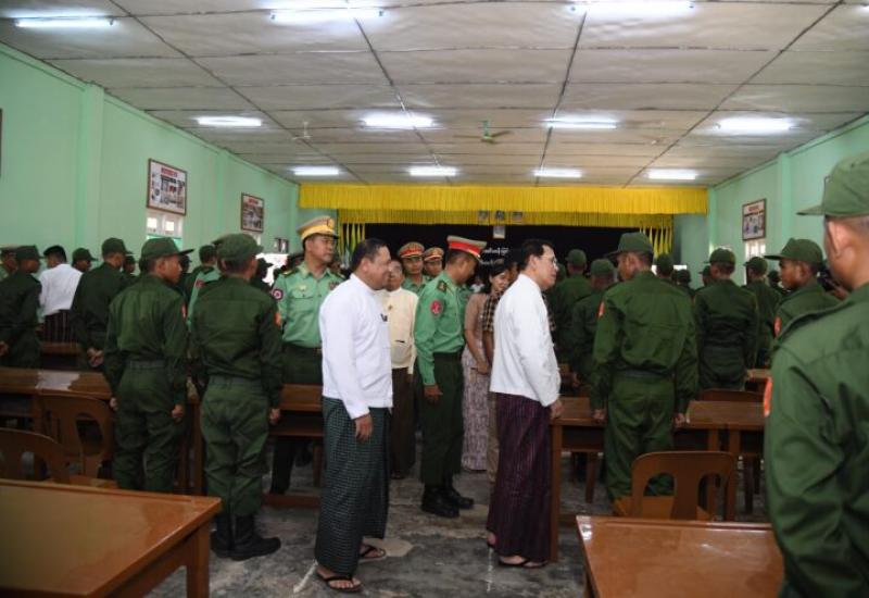 MEMBER of the Central Body on Summoning People’s Military Servants Union Minister for Information U Maung Maung Ohn met trainees of People’s Military Servants Training 1/2024 at No 2 Advanced Training Depot in Nay Pyi Taw, together with Nay Pyi Taw Council Chairman U Than Tun Oo, Commander of Nay Pyi Taw Command Maj-Gen Saw Than Hlaing, relevant officials and artistes, yesterday.